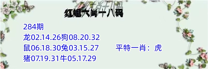 284期:九肖【虎羊猪鼠鸡马猴兔狗】開:?00对 |