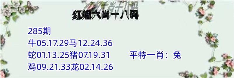 285期:〖六肖〗兔马猴鼠牛猪 |